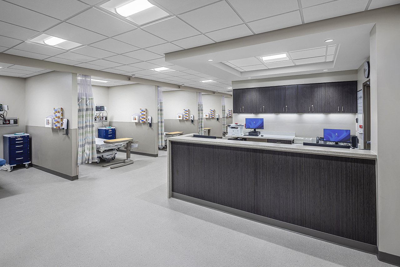 The ambulatory surgery center features four operating rooms and a capacity of twelve pre and post operation beds. In addition, the facility also includes a imaging suite providing MRI and CT scan capabilities.